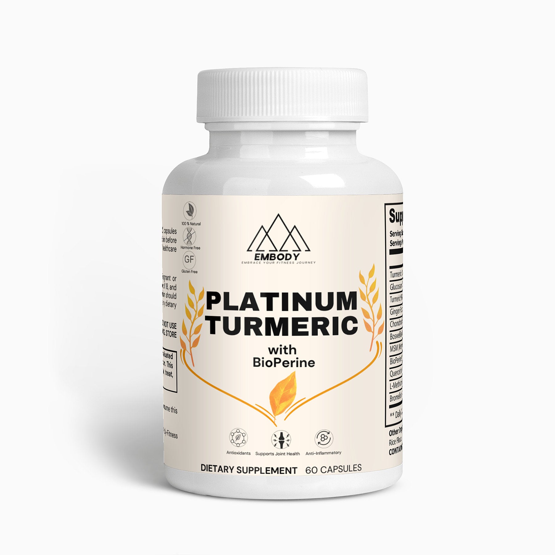 Our Platinum Turmeric blend contains various forms of turmeric, glucosamine, Boswellia extract(frankincense), piperine, and several other highly beneficial natural extracts to keep you at your best.